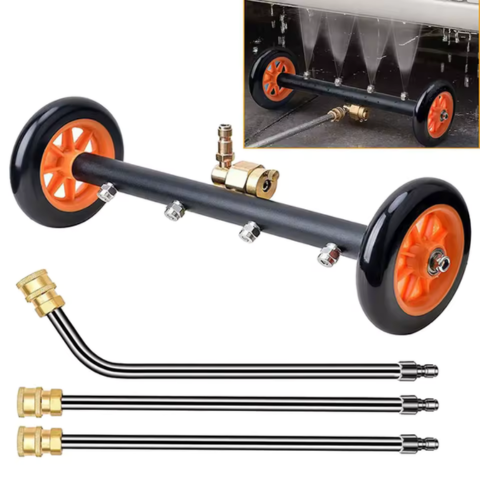 Ten czyścik podwozia to idealny dodatek, aby utrzymać spód Twojego samochodu w czystości z łatwością. Wyposażony w mocne dysze i solidne koła, łatwo łączy się z Twoim myjką ciśnieniową dzięki szybkozłączce 1/4". Wszechstronny, może być używany zarówno do usuwania błota i soli spod pojazdów, jak i do zamiatania tarasów, alejek i garaży.