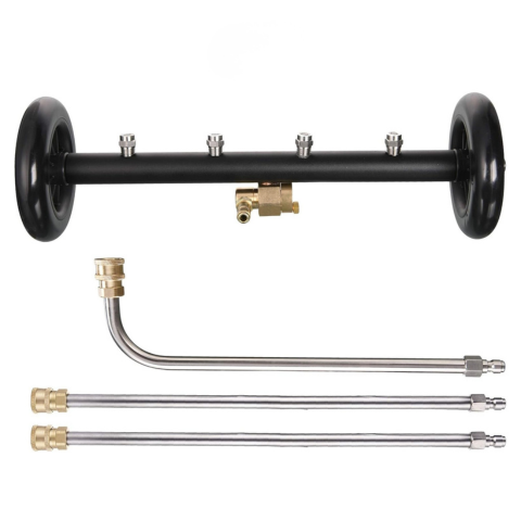 Tento vysokotlakový čistič podvozku umožňuje ľahko vyčistiť spodok vozidiel bez námahy. Vďaka svojim silným tryskám a praktickým kolieskam sa dostane pod auto, aby odstránil špinu, blato a soľ z ciest. Jeho rýchlospojka 1/4" zaručuje jednoduchú inštaláciu na väčšinu vysokotlakových čističov. Univerzálny, môže sa tiež zmeniť na vodný mop na umývanie podláh, terás a chodníkov.